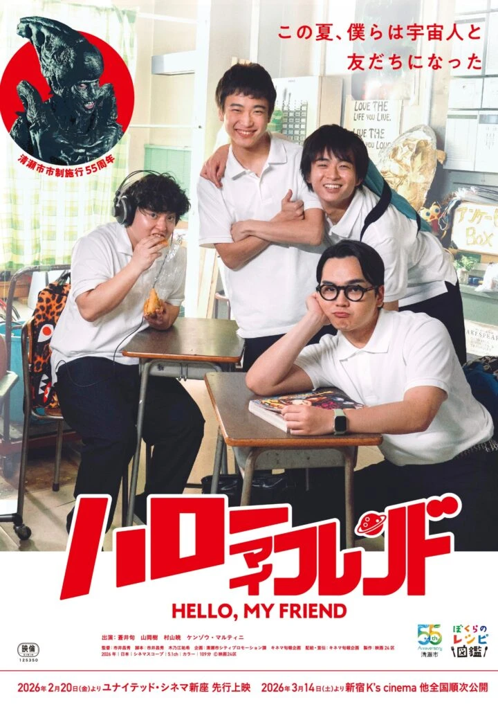 SF映画部員の高校生たちが、夏休みに遭遇した“凶悪なエイリアン⁉”と共に過ごした青春の夏時間をユーモラスに描いた本作の正式タイトルが「ハローマイフレンド」に決定し、劇場公開日入りのティザービジュアルが解禁となった。