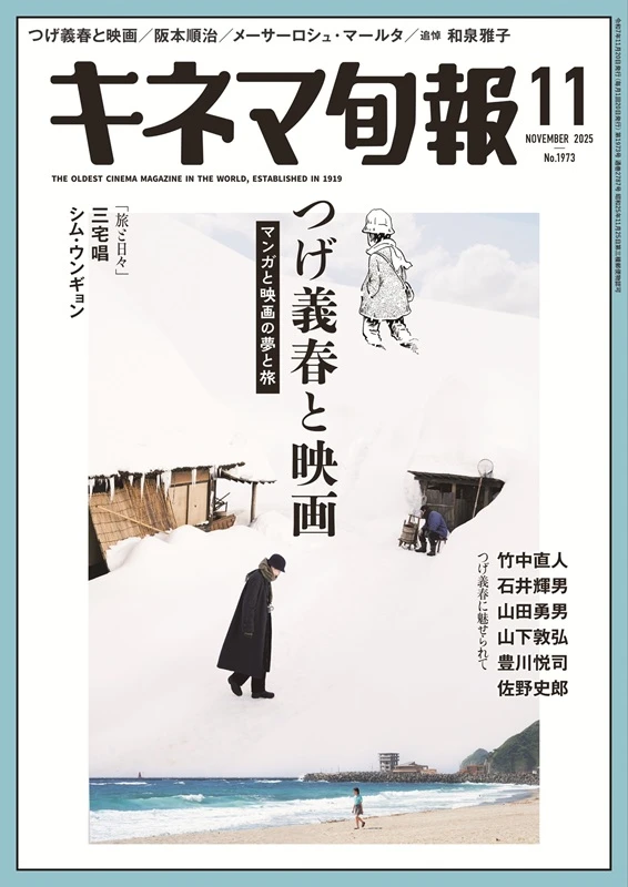 『キネマ旬報』11月号では、「旅と日々」のほかにも、過去に“つげ義春映画”を手掛けた監督たち──「無能の人」(1991年)の竹中直人、「ゲンセンカン主人」(1993年)「ねじ式」(1998年)の石井輝男、「蒸発旅日記」(2003年)の山田勇男、「リアリズムの宿」(2004年)の山下敦弘、ドラマ『つげ義春ワールド』(1998年)の豊川悦司──に加え、俳優の佐野史郎、数多くの“つげ義春映画”のプロデュースを手掛けきたセディックインターナショナルの中沢敏明が登場。それぞれの現場での思い出やつげ義春作品の魅力を、インタビューやエッセイで語っている(石井輝男監督は過去記事の再録)。